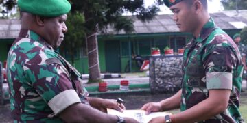 Wamena – Dandim 1702/JWY Letkol Cpn Athenius Murip, S.H.,M.H memimpin langsung upacara Corps Raport pindah satuan , di Lapangan Upacara Makodim 1702/Jayawijaya. (24/11/2022)