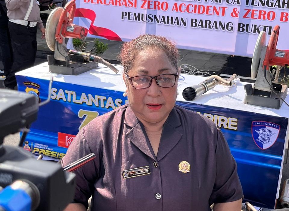 Nabire, admediapapua.com – Hadir dalam dalam acara deklarasi Zero Accident dan Zero Brong yang digelar oleh Ditlantas Polda Papua Tengah, Ketua DPRK Nabire Tan Kim Hoa Nanci Karolin Worabay, S.Sos., M.I.P., mengajak semua pihak untuk taat berlalulintas serta menekan angka kecelakaan.