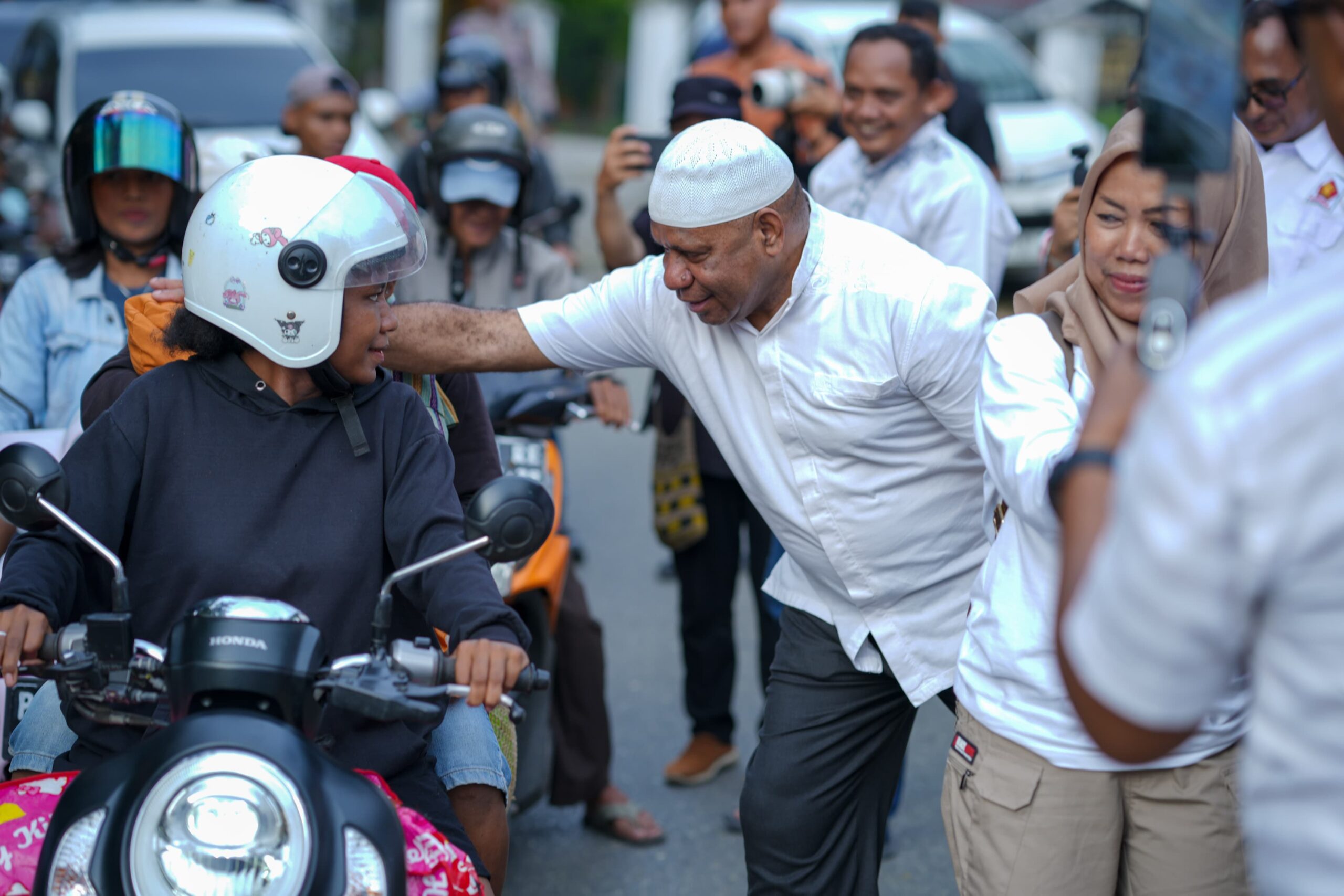 Jayapura, admediapapua.com – Dalam momen Bulan Suci Ramadhan 1446 H-2025 Hijriah, Partai Gerindra Papua bersama Calon Gubernur Provinsi Papua Matius Derek Fakhiri (MDF) menggelar kegiatan bagi – bagi takjil kepada para pengguna jalan, kegiatan ini dilaksanakan di ruas jalan depan Kantor Gerindra Papua, Senin (24 maret 2025) Sore.