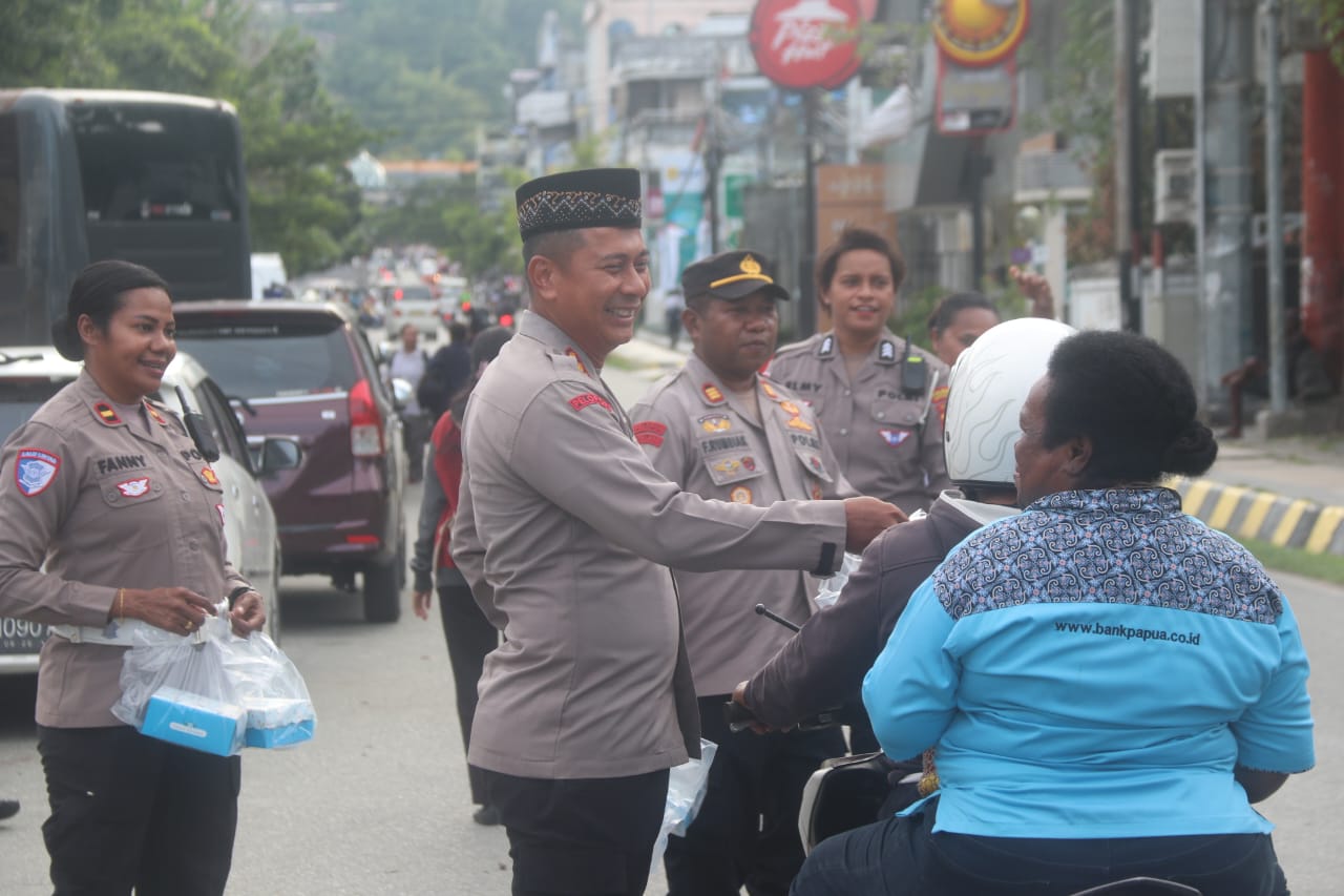 Jayapura, admediapapua.com- Bertempat didepan Mapolresta, Kapolresta Jayapura Kota Kombes Pol Dr. Victor D. Mackbon, S.H., S.IK., M.H., M.Si bersama Polwan Polresta merajut tali silaturahmi melalui berbagi takjil kepada masyarakat dan dilanjutkan buka bersama di Aula Mapolresta, Senin (24/03) Sore.