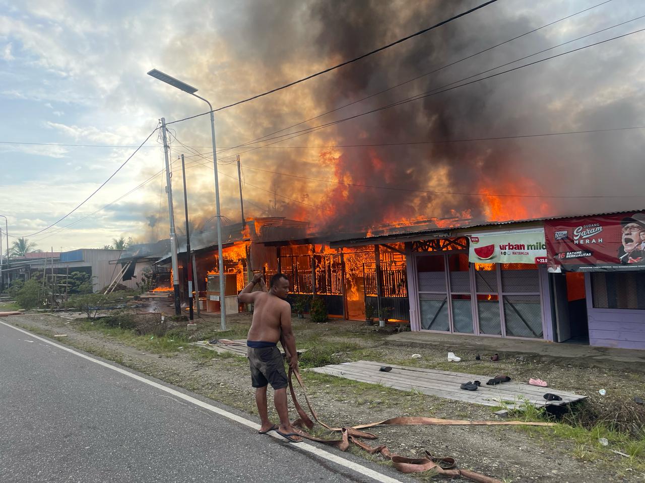 Nabire, admediapapua.com– Telah terjadi kebakaran hebat di SP 2, Wadio Kalisemen, Distrik Nabire Barat, yang menghanguskan sebuah meubel milik Supri dan empat rumah di sekitarnya. Kejadian ini berlangsung sekitar pukul 06.30 WIT dan diduga berawal dari ledakan yang terjadi di atas genteng.