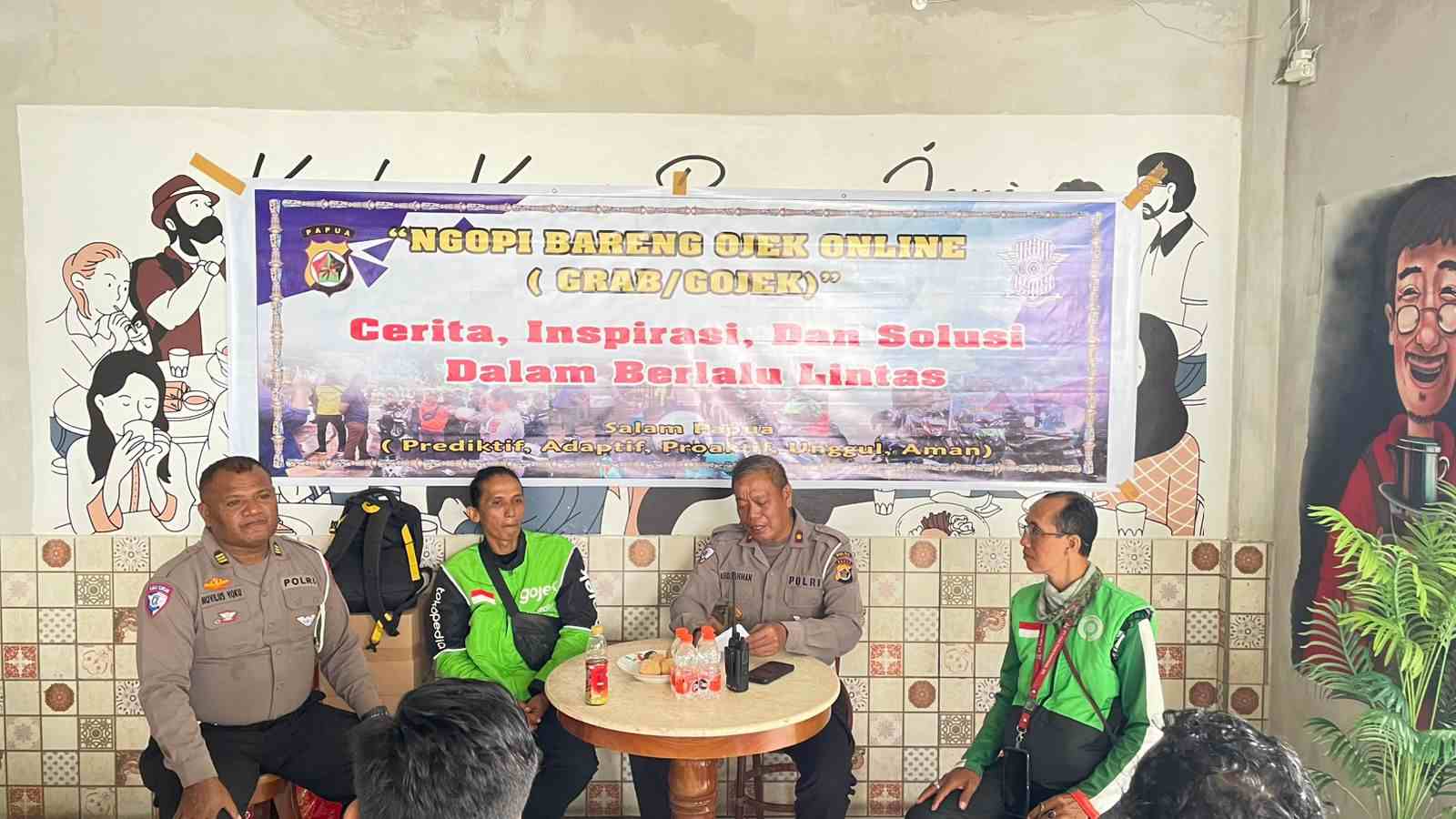 Jayapura, admediapapua. com – Unit Keamanan dan Keselamatan Satuan Lalu Lintas Polda Papua menggelar acara ngopi bareng bersama sejumlah driver ojek online (Greb dan Gojek) di sebuah kedai kopi, di kawasan ruko Dok II Kota Jayapura, Jumat(9/5/2025) Pagi.