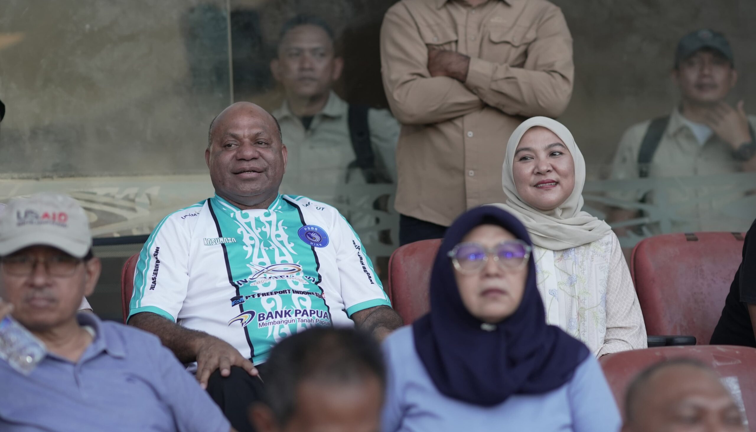 Jayapura, admediapapua.com – Laga PSBS Biak Kontra Persis Solo di Jayapura, Calon Gubernur dan Wakil Gubernur Provinsi Papua nomor urut 2, Mathius Fakhiri dan Aryoko Rumaropen, menyempatkan waktu untuk menyaksikan duel antara dua club, di Stadion Lukas Enembe Papua.