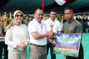 Jayapura, admediapapua.com – Pangdam XVII/Cenderawasih Mayjen TNI Rudi Puruwito, S.E., M.M didampingi Ketua Persit Kartika Chandara Kirana Daerah XVII/Cenderawasih Ny. Agustin Rudi Puruwito memimpin puncak acara syukuran peringatan Hari Ulang Tahun (HUT) Ke-62 Kodam XVII/Cenderawasih, yang digelar di Makodam XVII/Cenderawasih, Sabtu (17/5/2025).