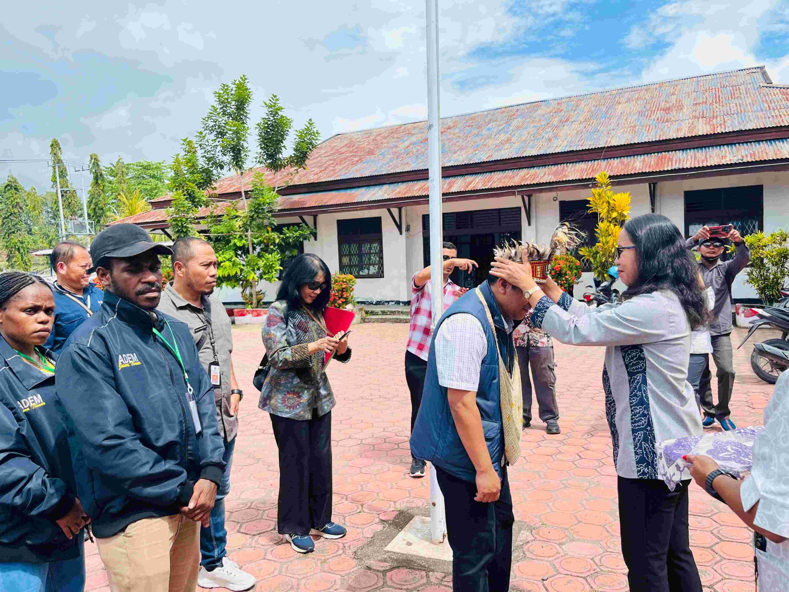 Dalam acara yang penuh makna tersebut, Kepala Dinas menyematkan mahkota khas Papua dan mengalungkan noken kepada Koordinator Program ADEM, Teguh Prastowo dari Dinas Pendidikan Jawa Timur, sebagai bentuk penghargaan atas keberhasilan program dan dukungan dalam pendidikan para siswa.