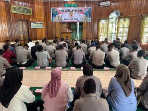 Nabire, admediapapua.com – Polda Papua Tengah kembali melaksanakan kegiatan pembinaan rohani dan mental (Binrohtal) sebagai upaya meningkatkan iman dan taqwa personel kepada Tuhan Yang Maha Esa. Kegiatan rutin ini digelar setiap Kamis setelah apel pagi, Kamis (18/9/2025).