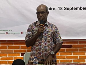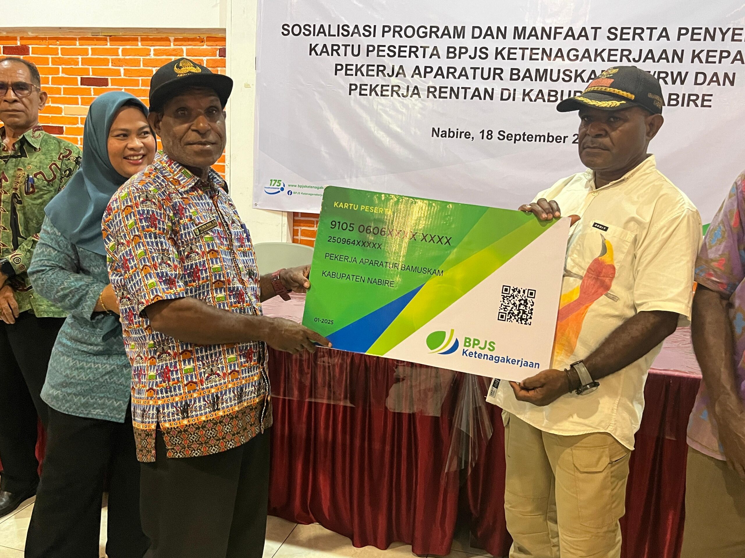 Nabire, admediapapua.com – BPJS Ketenagakerjaan Kantor Cabang Nabire melaksanakan sosialisasi program dan manfaat jaminan sosial ketenagakerjaan sekaligus penyerahan kartu peserta kepada aparatur BAMUSKAM, RT/RW, serta pekerja rentan di Kabupaten Nabire. Kegiatan ini berlangsung di Rumah Makan Sari Kuring pada Kamis (18/9/2025).