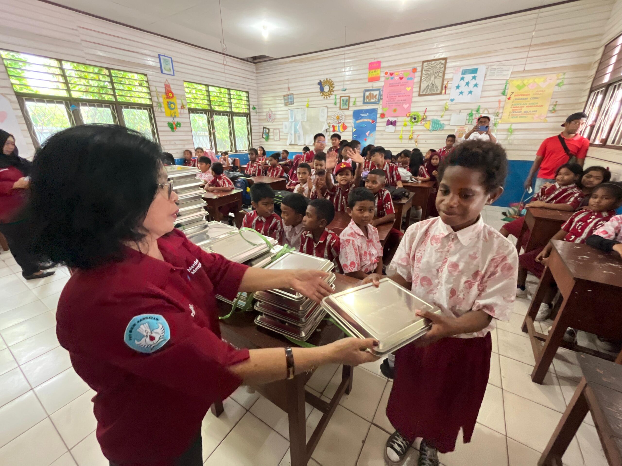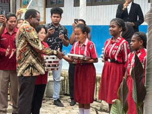 Nabire, admediapapua.com – Kantor Pelayanan Pemenuhan Gizi (KPPG) Kabupaten Nabire menggelar kegiatan launching program “Makan Bergizi Gratis” pada [tanggal kegiatan], bertempat di SD Negeri Inpres Oyehe, Jalan Kusuma Bangsa, Kelurahan Oyehe, Kabupaten Nabire. Kegiatan ini merupakan bagian dari program Badan Gizi Nasional yang bertujuan untuk memberikan asupan gizi yang cukup bagi siswa di daerah tersebut.