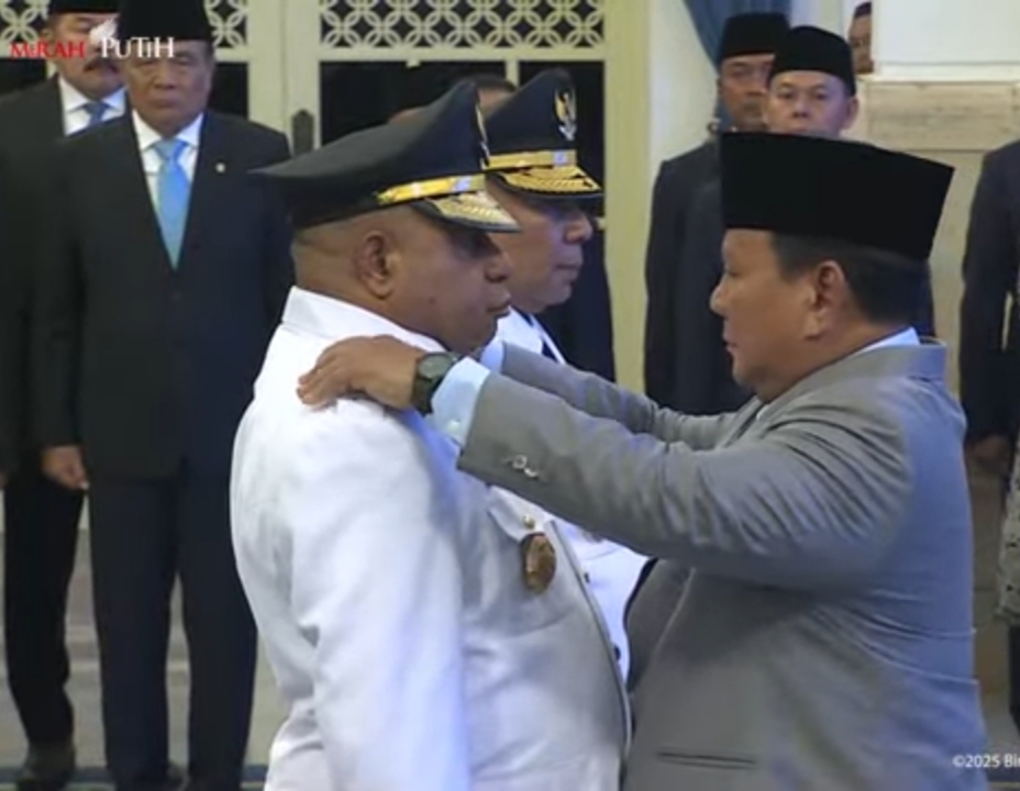 Sebelum pengucapan sumpah janji jabatan, Presiden Prabowo Subianto mengingatkan Gubernur dan Wakil Gubernur Provinsi Papua, untuk menjalankan tugasnya sebagai Kepala Daerah, dan memegang teguh dasar Negara.
