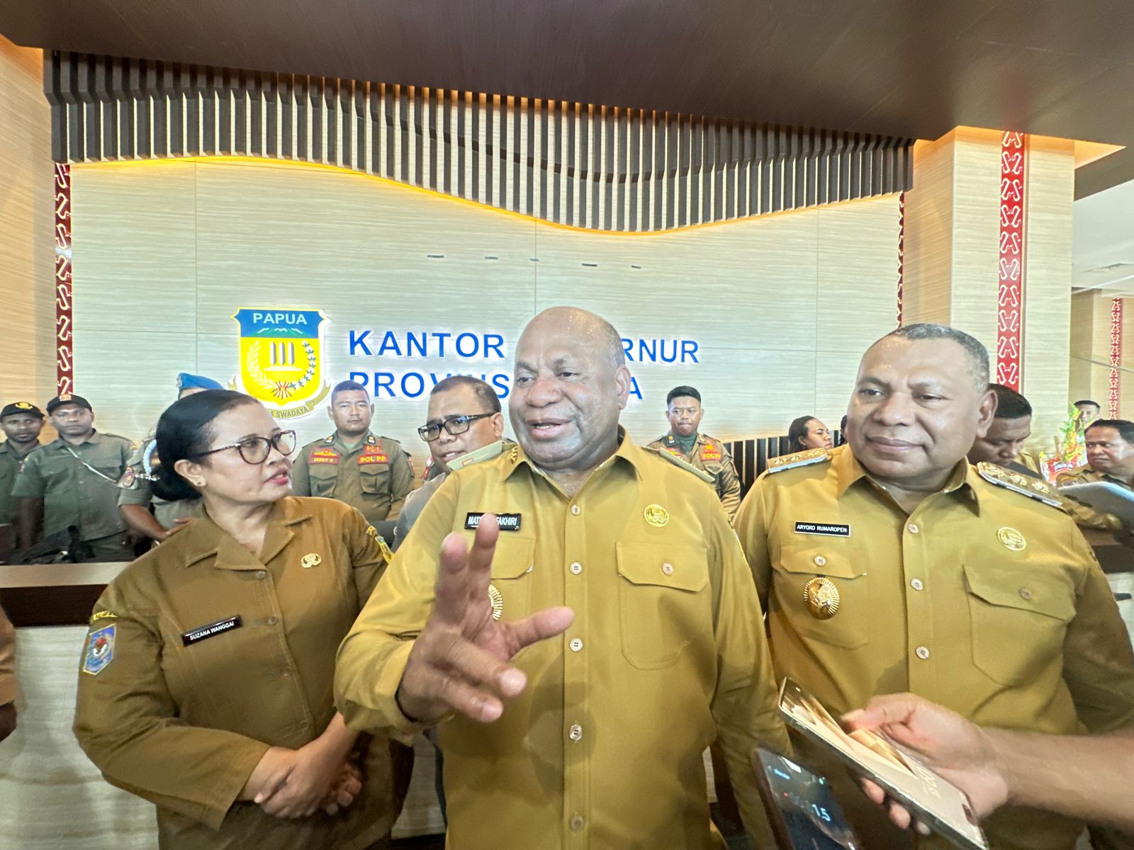 Jayapura, admediapapua.com – Gubernur Papua, Matius D. Fakhiri, bersama Wakil Gubernur Papua, Aryoko Alberto Ferdinand Rumaropen, memulai hari pertama berkantor pada Senin (20/10/2025). Dalam wawancara setelah apel perdana, Gubernur Papua Matius Fakhiri menyampaikan visi dan harapannya untuk masa depan Provinsi Papua. Fakhiri menegaskan bahwa salah satu prioritas utama dalam kepemimpinannya adalah menjadikan Papua sebagai etalase bangsa, yaitu contoh bagi provinsi-provinsi lain, baik di Indonesia maupun di kawasan Pasifik.