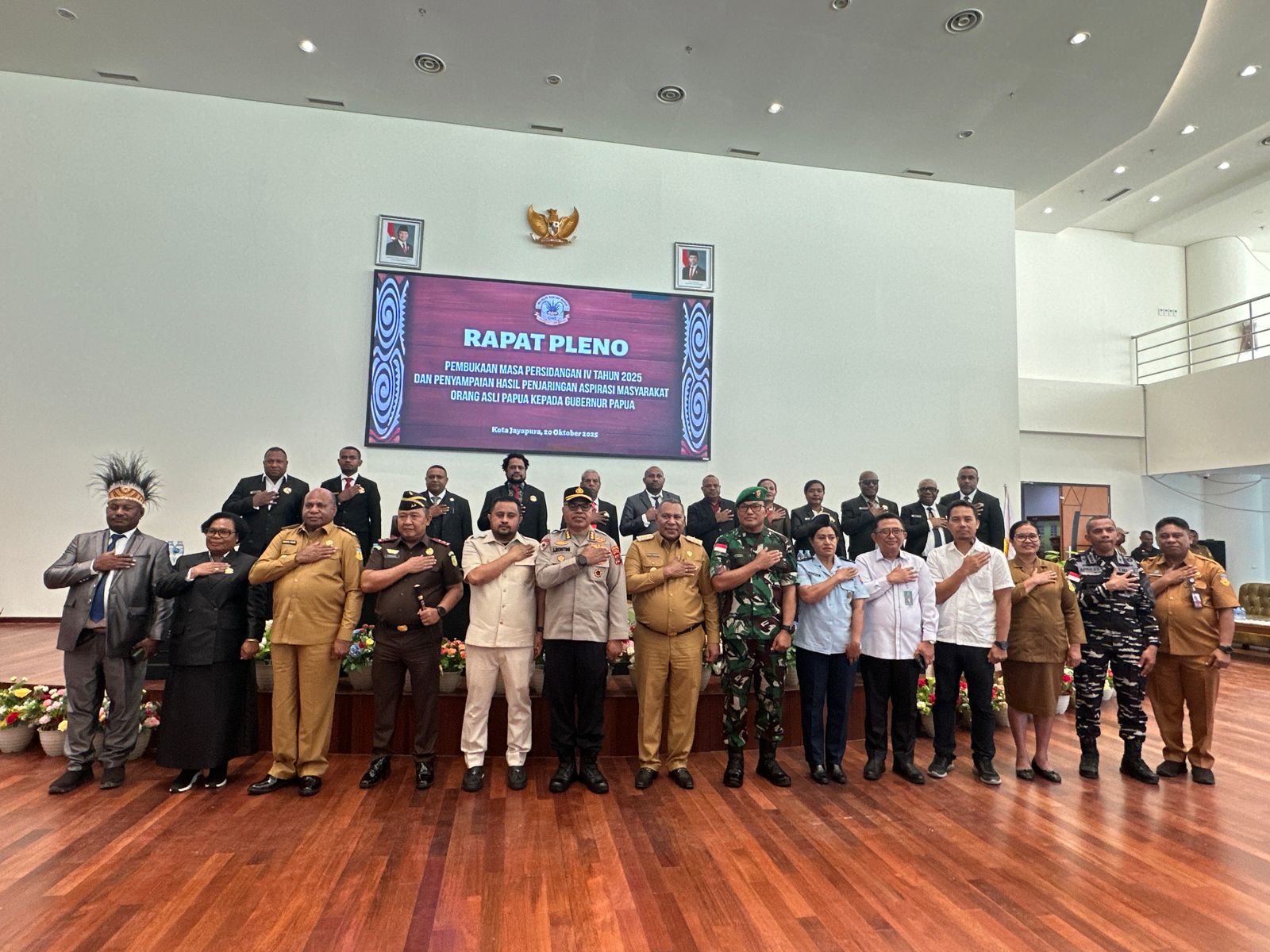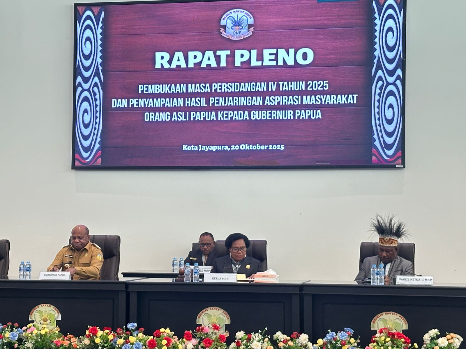 Jayapura, admediapapua.com – Majelis Rakyat Papua (MRP) resmi menggelar Rapat Pleno Pembukaan Masa Persidangan IV Tahun 2025 sekaligus penyerahan hasil penjaringan aspirasi masyarakat Orang Asli Papua (OAP) kepada Gubernur Provinsi Papua, Senin (20/10/2025), di Kota Jayapura.