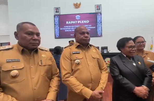 Jayapura, admediapapua.com – Usai menghadiri Rapat Pleno Pembukaan Masa Persidangan IV Tahun 2025 dan penyampaian hasil penjaringan aspirasi masyarakat Orang Asli Papua (OAP) oleh Majelis Rakyat Papua (MRP), Gubernur Papua Matius Fakhiri menyampaikan arah kebijakan strategis pemerintahannya dalam wawancara bersama media, Senin (20/10/2025) di Jayapura.