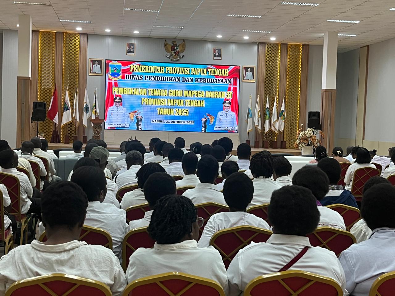 Nabire, admediapapua.com – Pemerintah Provinsi Papua Tengah menyelenggarakan kegiatan pembekalan untuk 276 guru yang akan ditempatkan di daerah Terluar, Terdepan, dan Tertinggal (3T). Ratusan guru yang terpilih akan bertugas di berbagai distrik di wilayah 3T Kegiatan ini berlangsung di Ballroom Gubernur, yang terletak di Bandara Lama, Nabire, Papua Tengah (21/10/2025).