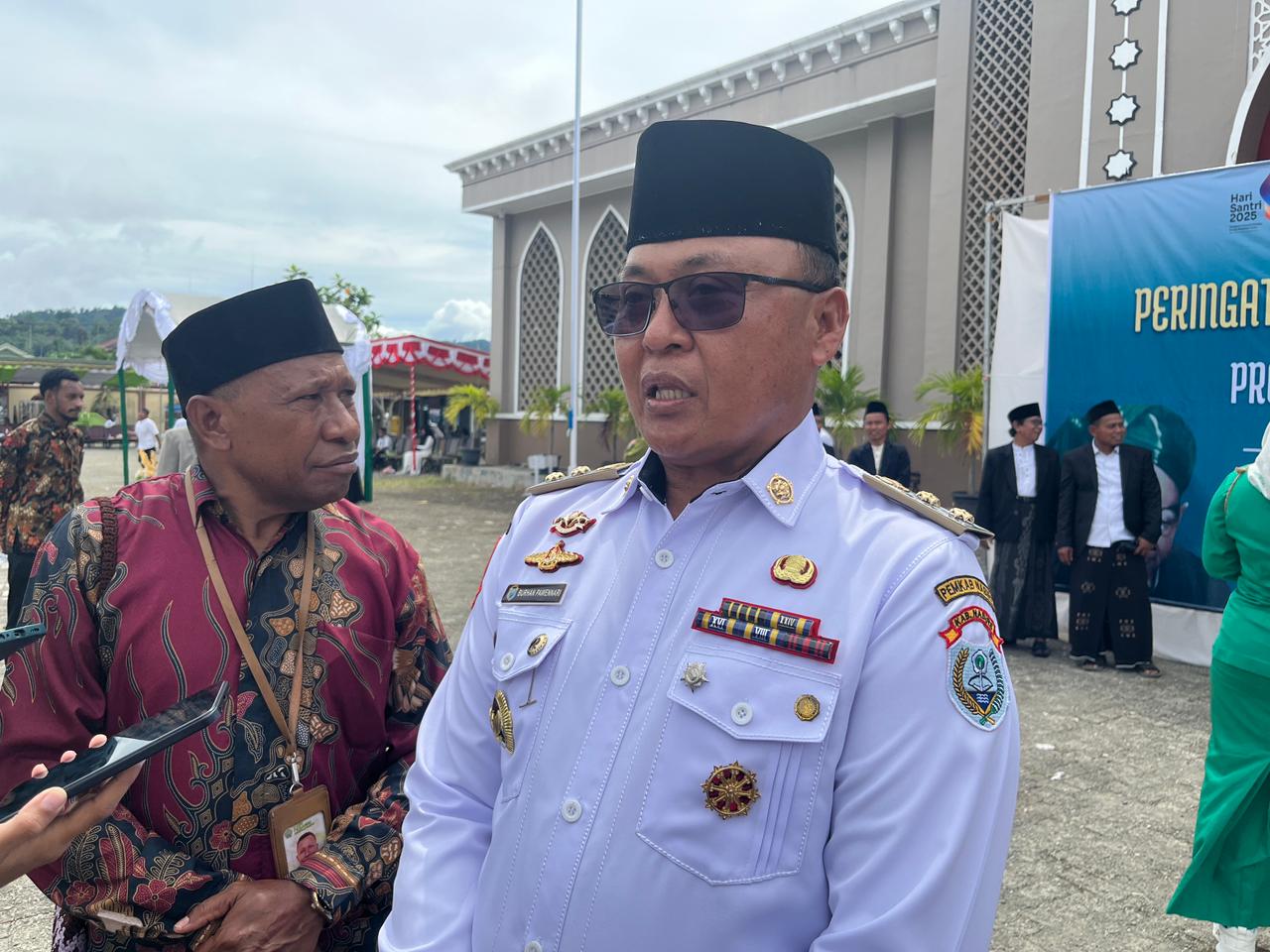 Di samping itu, Wakil Bupati Kabupaten Nabire, Burhanuddin Pawennari, mewakili Bupati Nabire, menyampaikan, “Saya selaku Wakil Bupati Kabupaten Nabire, mewakili Bupati Nabire dan seluruh masyarakat Kabupaten Nabire, tentunya menyampaikan selamat Hari Santri Nasional tanggal 22 Oktober 2025. Tentunya harapan kita semoga pondok-pondok pesantren di Kabupaten Nabire dapat mencetak santri-santri yang cerdas, tangguh, pintar, beradab, dan berakhlak mulia.”