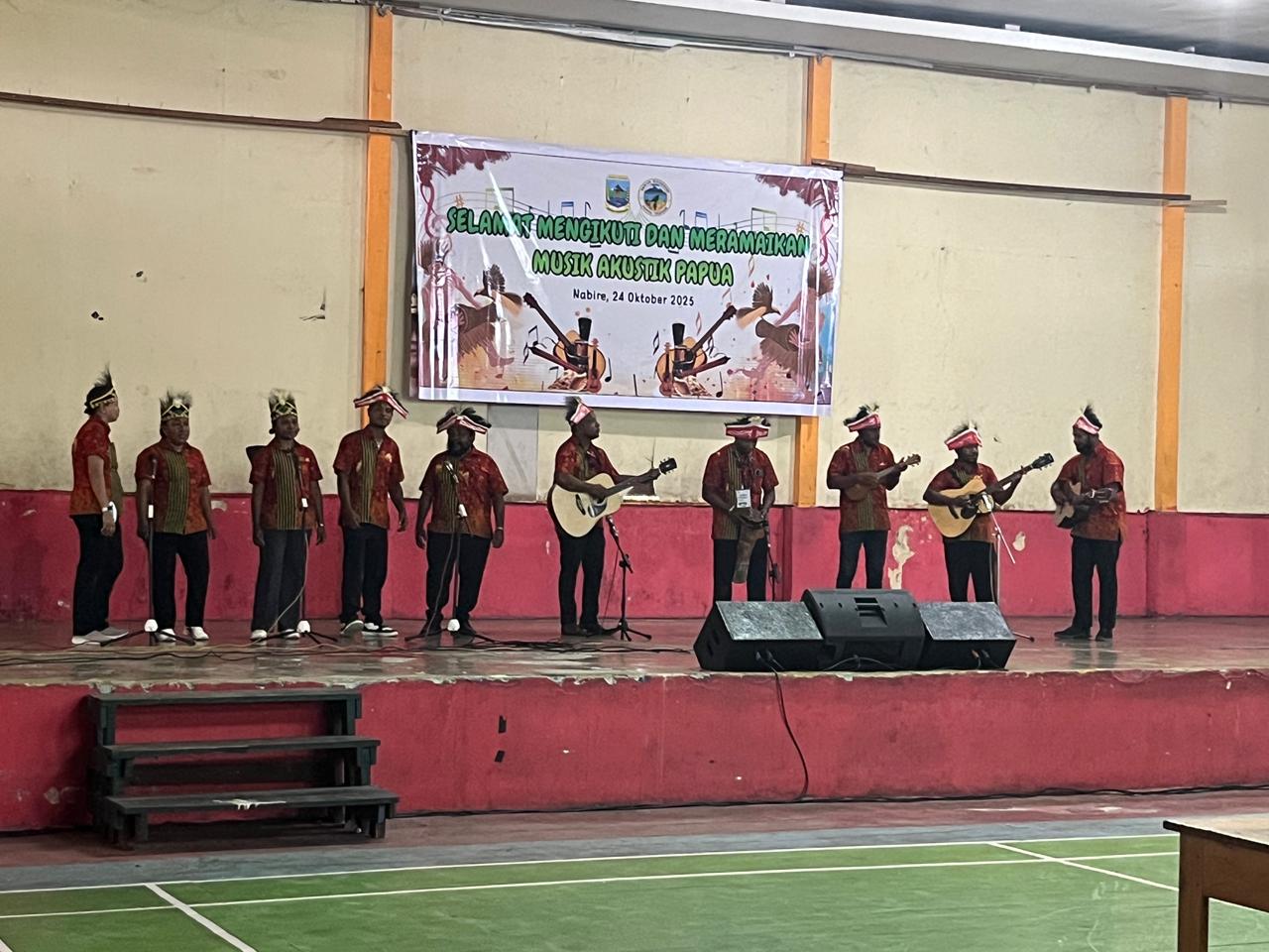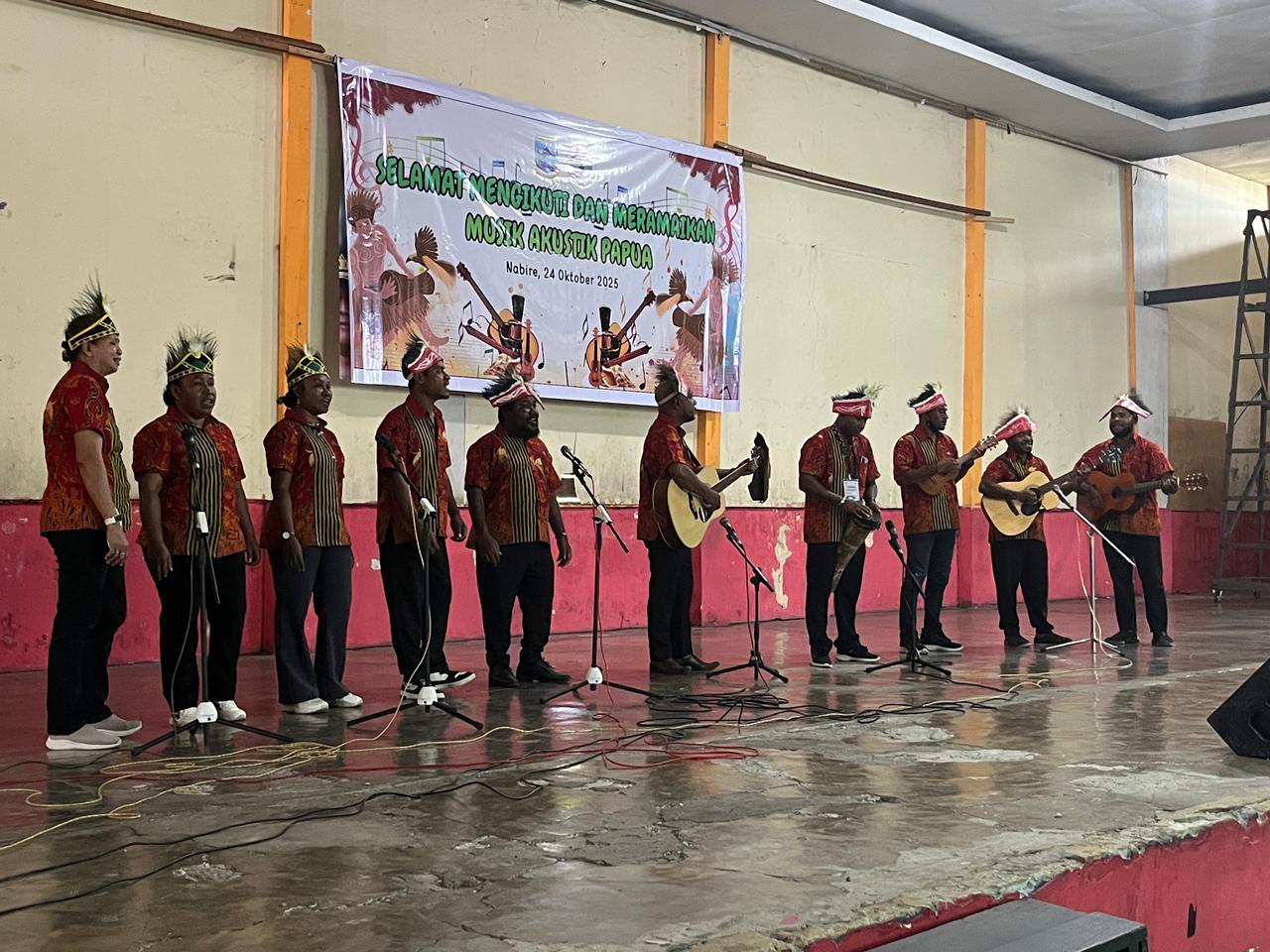 Nabire, admediapapua.com – Dewan Kesenian Papua Tengah (DKPT) menggelar Lomba Tradisional Akustik Papua yang berlangsung di Gedung Goor, Nabire (23/10/20250). Acara ini diikuti oleh 17 grup musik yang mempersembahkan penampilan akustik tradisional Papua, yang berhasil.