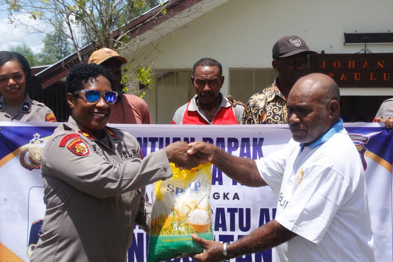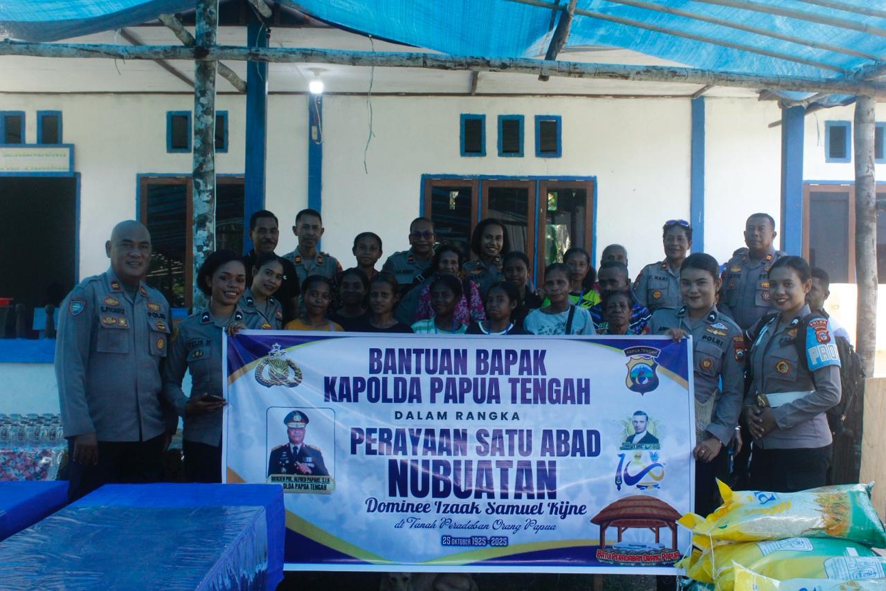 Sebagai bagian dari rangkaian perayaan tersebut, Kapolda Papua Tengah juga memberikan bantuan beras sebanyak 3 ton kepada 15 gereja di Kabupaten Teluk Wondama pada Jumat (24/10/2025). Kegiatan pembagian bantuan ini dipimpin oleh PS. Kabid Propam Polda Papua Tengah, Kompol Florensin Yuliet Nari, S.H., yang didampingi oleh Kepala Dinas Perindagkop Kabupaten Teluk Wondama, Ekberson Karubuy, S.E., serta sejumlah pejabat terkait lainnya, termasuk Pama Yanmas SPKT Polda Papua Tengah, Iptu Samuel Picauly, PS. Kasat Binmas Polres Nabire, Iptu Ambrosius P. Manery, dan beberapa personil lainnya dari Polda Papua Tengah.