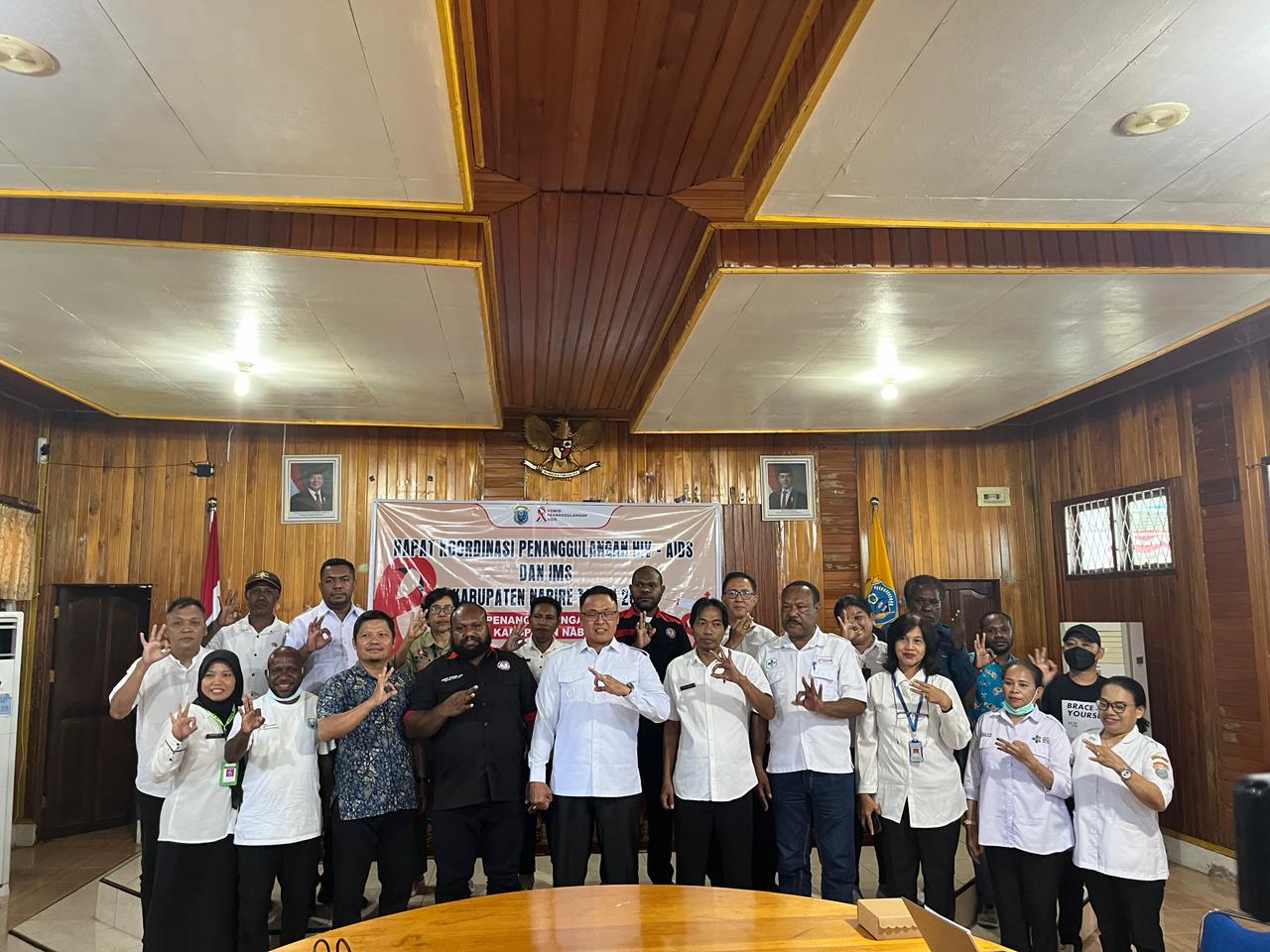 Rapat koordinasi dibuka oleh Wakil Bupati Nabire, Burhanuddin Pawennari. Dalam sambutannya, beliau menyampaikan rasa terima kasih kepada seluruh pihak yang hadir dan memberikan dukungan dalam kegiatan ini. Beliau menyoroti tingginya angka penderita HIV-AIDS di Kabupaten Nabire, yang menurut data mencapai lebih dari 10.800 kasus di seluruh Papua, dengan tren yang terus meningkat.