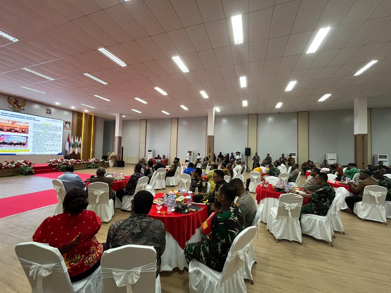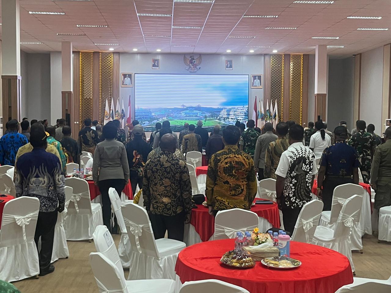Nabire, admediapapua.com – Pemerintah Provinsi Papua Tengah menggelar rapat koordinasi untuk memperkuat penyelenggaraan urusan pemerintahan umum dan mempercepat pembangunan di daerah otonomi baru. Kegiatan ini berlangsung di Ballroom Kantor Gubernur dan dihadiri oleh pejabat tinggi dari Kementerian Dalam Negeri, Komisi Pemilihan Umum RI, serta Komisi II DPR RI, bersama dengan kepala daerah dari 8 kabupaten di Papua Tengah dan jajaran Forkopimda setempat.