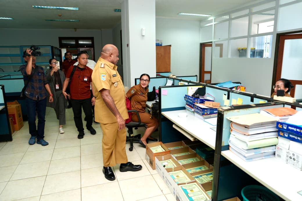 Jayapura, admediapapua.com – Gubernur Papua, Matius Fakhiri, melakukan inspeksi mendadak (sidak) ke Dinas Pekerjaan Umum Penataan Ruang dan Perumahan Rakyat (PUPRKP) Papua di Jayapura (4/11/2025). Kunjungan ini bertujuan untuk melihat langsung kinerja pegawai dan memantau perkembangan berbagai kegiatan yang tengah berlangsung di dinas tersebut.