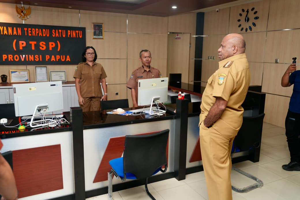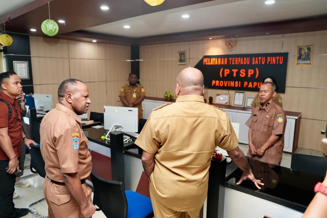 Jayapura, admediapapua.com – Gubernur Papua, Matius Fakhiri, melakukan inspeksi mendadak (sidak) ke PTSP (Pelayanan Terpadu Satu Pintu) Provinsi Papua (4/22/2025). Kunjungan ini bertujuan untuk mengetahui sejauh mana Pelayanan Terpadu Satu Pintu (PTSP) Provinsi Papua dalam memberikan pelayanan administrasi perizinan, baik perizinan usaha maupun non-perizinan, secara terpadu, terkoordinasi, efektif, dan efisien.