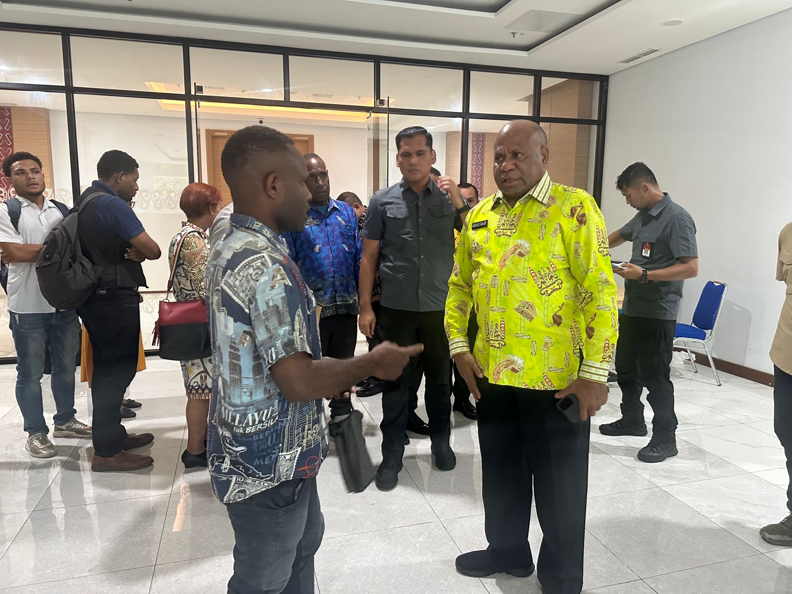 Jayapura, admediapapua.com – Di tengah kesibukan tugas pemerintahan, Gubernur Papua, Matius Fakhiri, dan Wakil Gubernur, Aryoko Rumaropen, meluangkan waktu untuk menemui sejumlah masyarakat di Kantor Gubernur Papua. Suasana di kantor gubernur tampak hangat dan penuh keakraban, dengan masyarakat dari berbagai latar belakang berbincang langsung dengan dua pemimpin daerah ini.