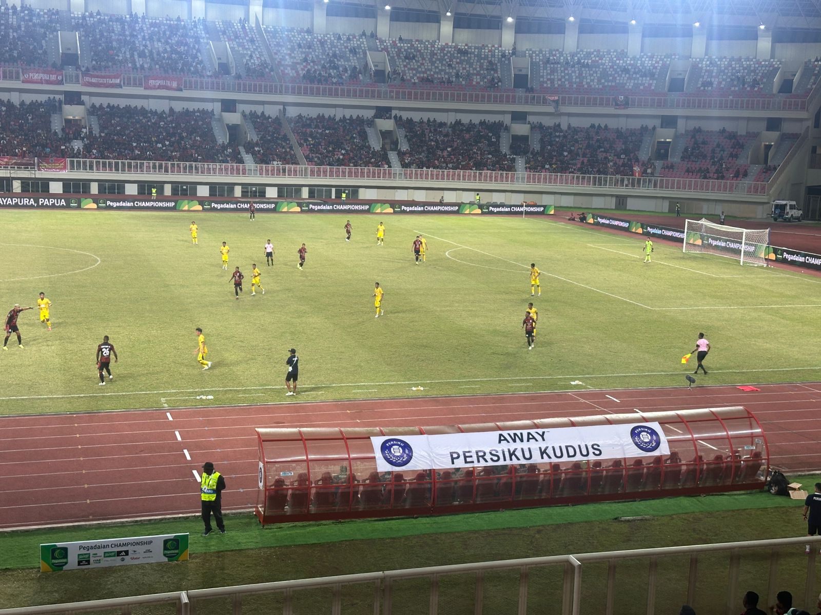 Pada babak pertama, Persipura Jayapura unggul 1-0 atas tamunya, Persiku Kudus, berkat gol yang dicetak oleh Matheus Silva melalui tendangan penalti pada menit ke-39. Keunggulan tersebut bertahan hingga akhir laga, dengan Persipura Jayapura menutup pertandingan dengan skor 1-0.