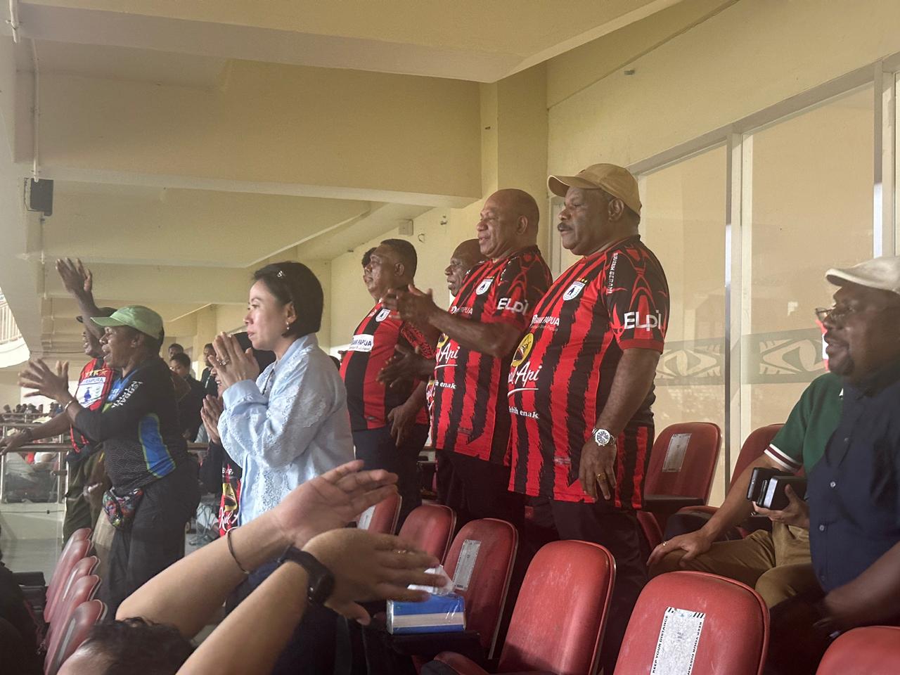 Gubernur Matius Fakhiri yang hadir langsung di stadion tampak sangat antusias, memberikan dukungan yang kuat bagi tim kebanggaan masyarakat Papua. Ekspresi kegembiraannya sepanjang laga mencerminkan dukungannya yang besar terhadap Persipura.