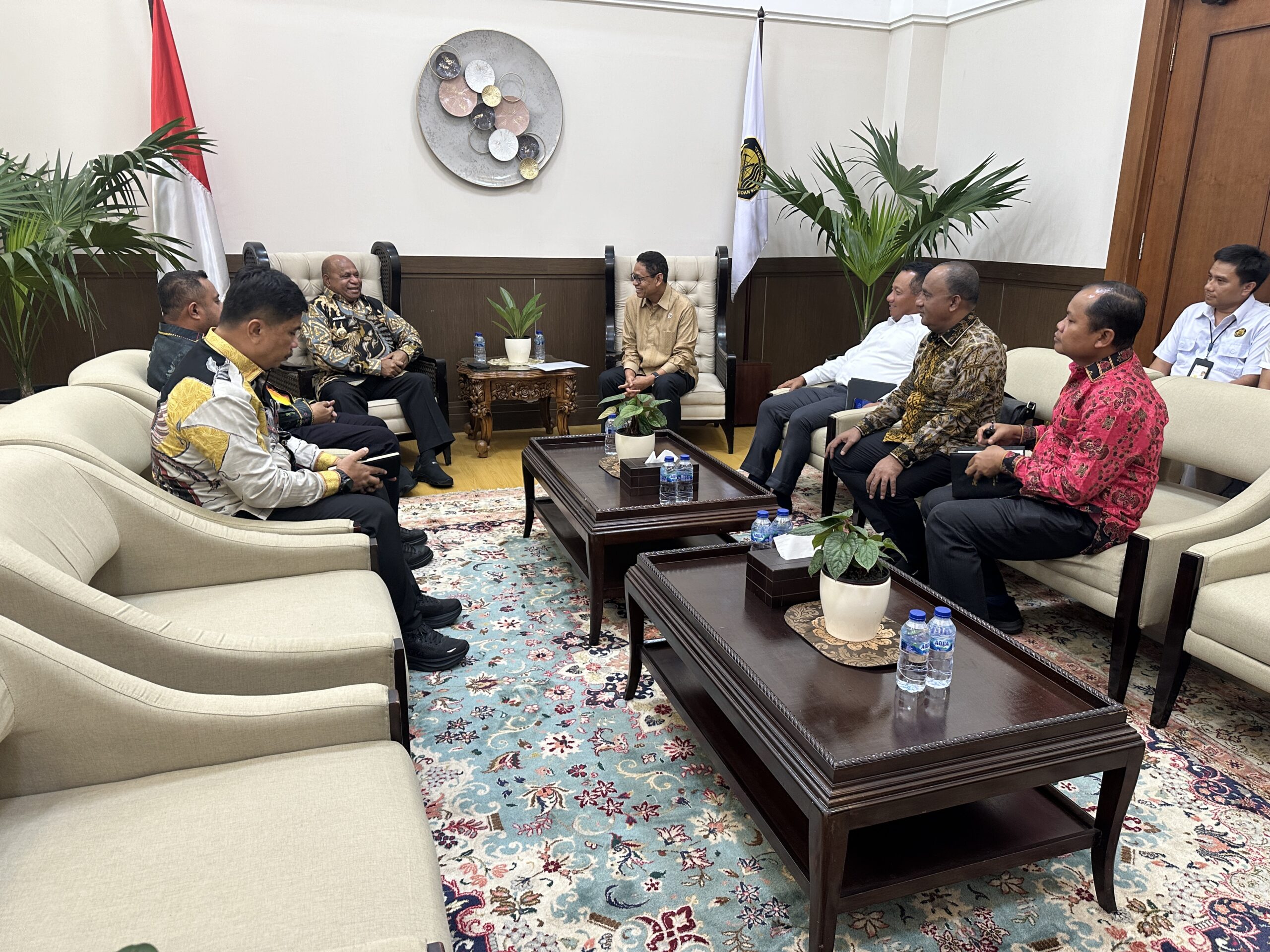 Pertemuan strategis ini berlangsung pukul 11.30 WIB di kantor Kementerian ESDM. Gubernur Papua Matius Fakhiri hadir langsung, didampingi oleh sejumlah pejabat penting dari pemerintah provinsi dan daerah di Papua.