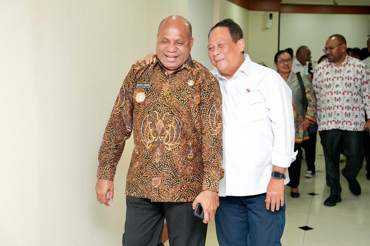 Jakarta, admediapapua.com – Gubernur Papua, Matius Fakhiri, mengadakan pertemuan dengan Wakil Menteri Perhubungan (Wamenhub) Komjen Pol (Purn) Drs. Suntana, M.Sidi di Gedung Kementerian Perhubungan, Jakarta. Pertemuan ini membahas rencana program mudik gratis untuk Natal dan Tahun Baru (Nataru) 2025 bagi masyarakat Papua.