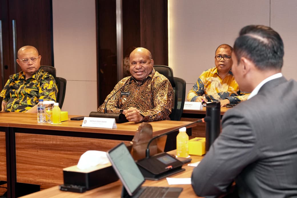 Hadir dalam pertemuan tersebut juga rombongan Gubernur Papua, yang terdiri dari beberapa pejabat daerah, antara lain: Karo Perekonomian dan Administrasi Pembangunan Dr. Andry, S.IP., M.Si., Kepala Inspektorat F. Danny Mk. Korwa, STP., M.H., dan Plt. BKD Provinsi Papua Jimmy Wanimbo Apedius (Staf Khusus), dan Rifai Darus (Jubir).