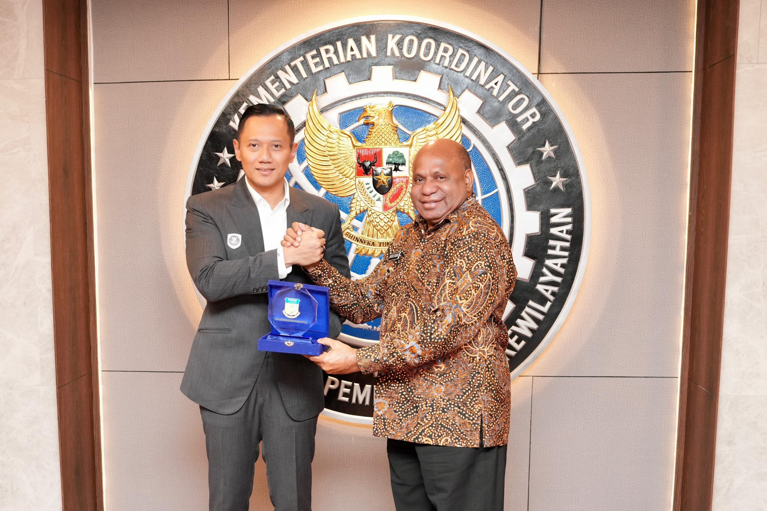 Jakarta, admediapapua.com – Gubernur Papua Komjen Pol (Purn) Mathius Derek Fakhiri SIK., M.H. mengadakan pertemuan penting dengan Dr. Agus Harimurti Yudhoyono, M.Sc., MPA, MA, Menteri Koordinator Bidang Infrastruktur dan Pembangunan Kewilayahan, di Gedung Kementerian Infrastruktur. Pertemuan ini membahas pengembangan infrastruktur di Papua dengan penekanan pada pencapaian Konektivitas Penuh yang diharapkan selesai pada 2029.