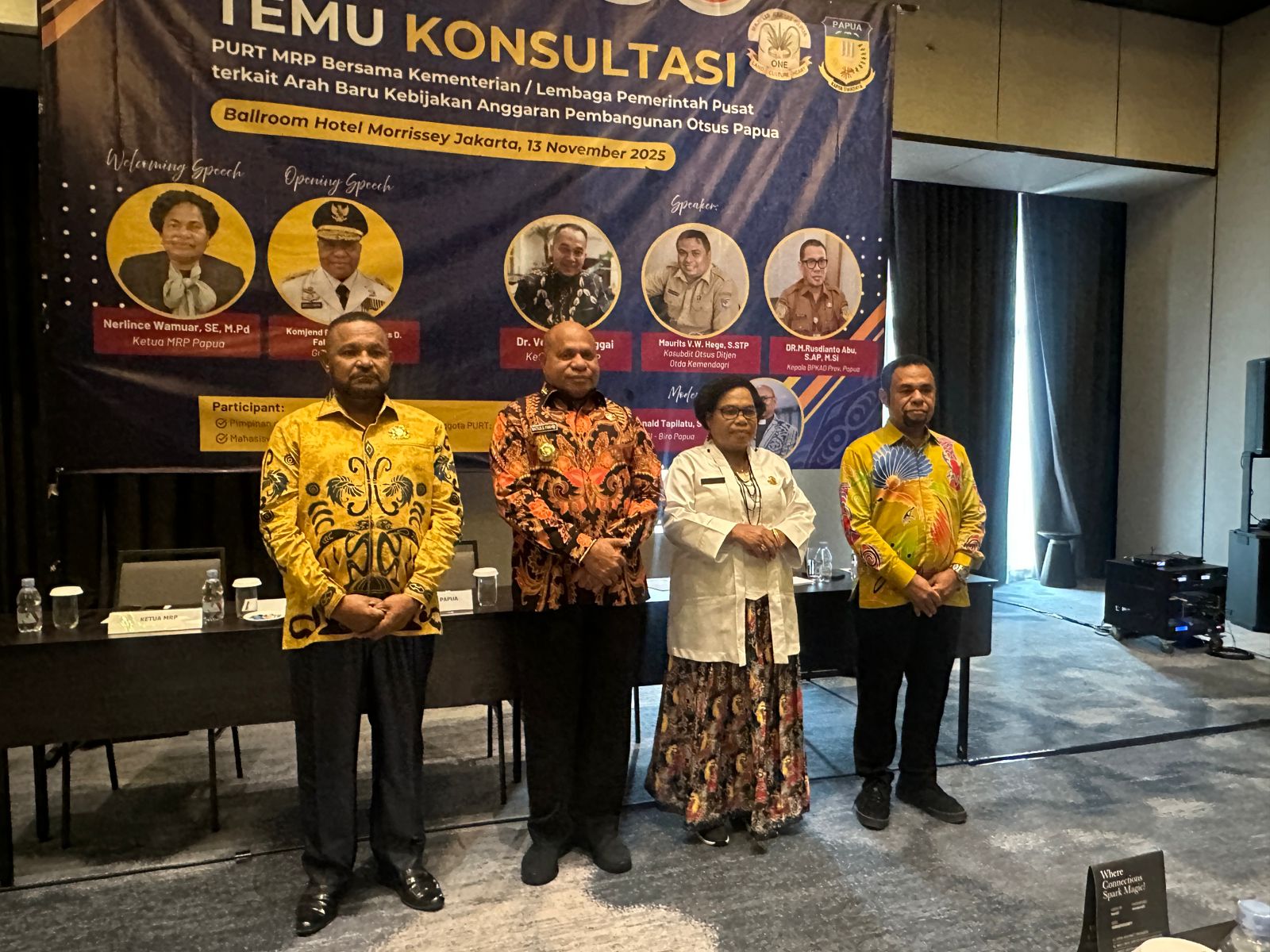 Jakarta, admediapapua.com – Gubernur Papua, Matius D. Fakhiri, menegaskan bahwa Majelis Rakyat Papua (MRP) adalah mitra strategis pemerintah dalam memperkuat pelaksanaan Otonomi Khusus (Otsus) dan akselerasi pembangunan di Tanah Papua. Hal itu disampaikannya saat membuka secara resmi Temu Konsultasi Panitia Urusan Rumah Tangga (PURT) MRP bersama kementerian dan lembaga pemerintah pusat di Ballroom Hotel Morrissey (13/11/2025)