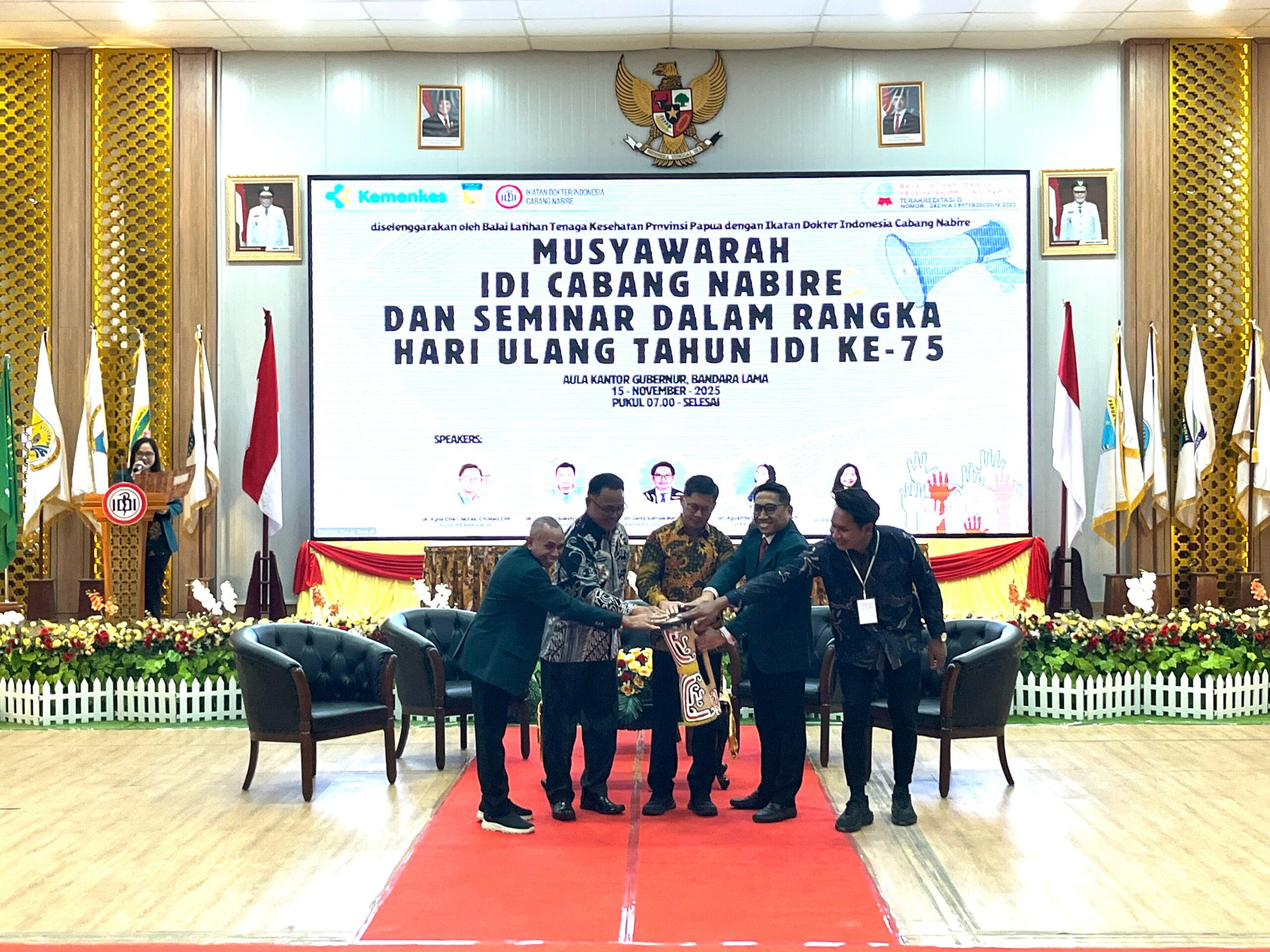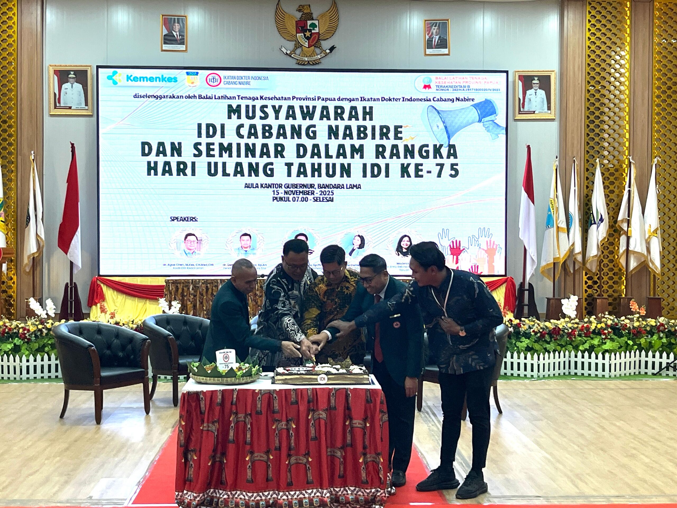 Nabire, admediapapua.com – Ikatan Dokter Indonesia (IDI) Cabang Nabire menggelar Musyawarah Cabang (Muscab) dan Seminar Kesehatan dalam rangka memperingati Hari Ulang Tahun IDI ke-75 tahun 2025. Kegiatan berlangsung di ballroom Kantor Gubernur Papua Tengah, Sabtu (15/11/2025).
