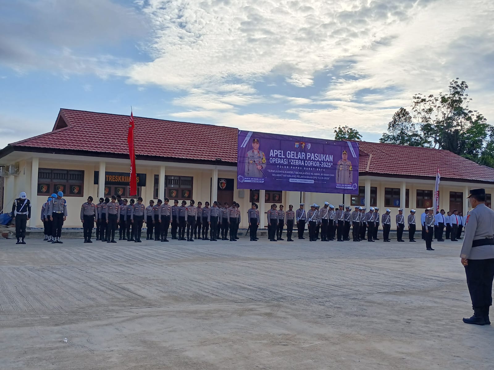 Sorong, admediapapua.com -Kepolisian Daerah Papua Barat Daya melaksanakan Apel Gelar Pasukan Operasi Zebra Dofior-2025 bertempat di Gedung Baru Kapolda Papua Barat Daya, Jalan Sandiwon, Kabupaten Sorong, Senin (17/11/2025).