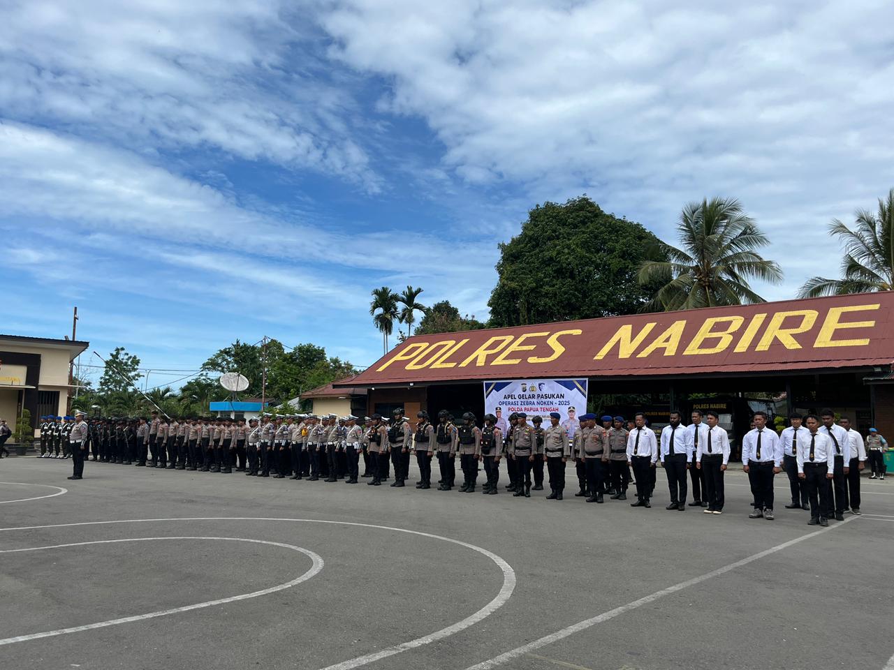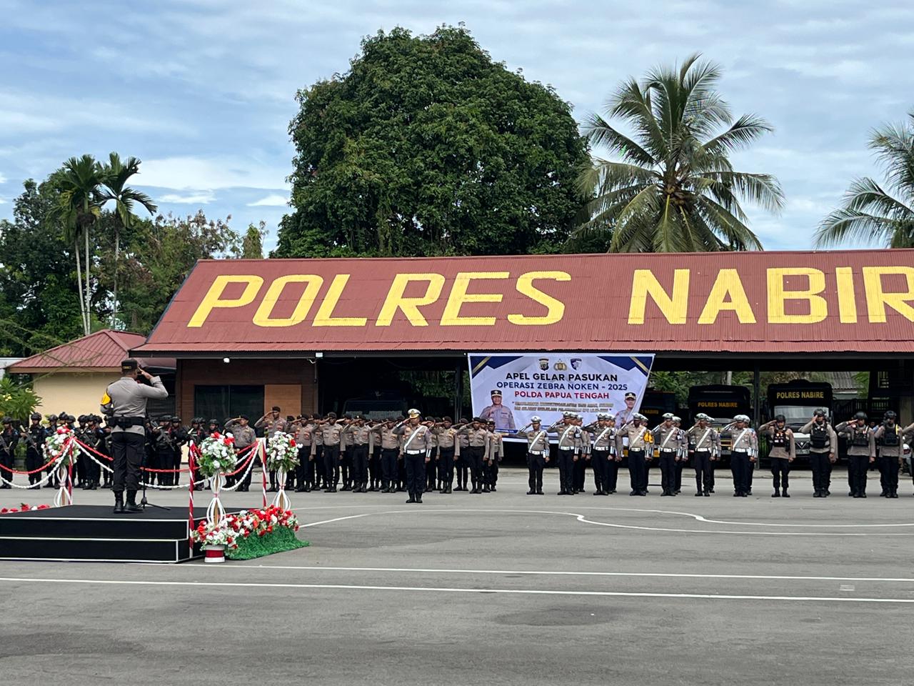 Nabire, admediapapua.com – Polda Papua Tengah mulai mematangkan kesiapan pengamanan menjelang Natal dan Tahun Baru (Nataru) 2025–2026 melalui pelaksanaan Apel Gelar Pasukan Operasi Zebra Noken 2025. Kegiatan yang berlangsung di Mapolres Nabire pada Senin, 17 November 2025, dipimpin langsung oleh Kapolda Papua Tengah, Brigadir Jenderal Polisi Alfred Papare, S.I.K.