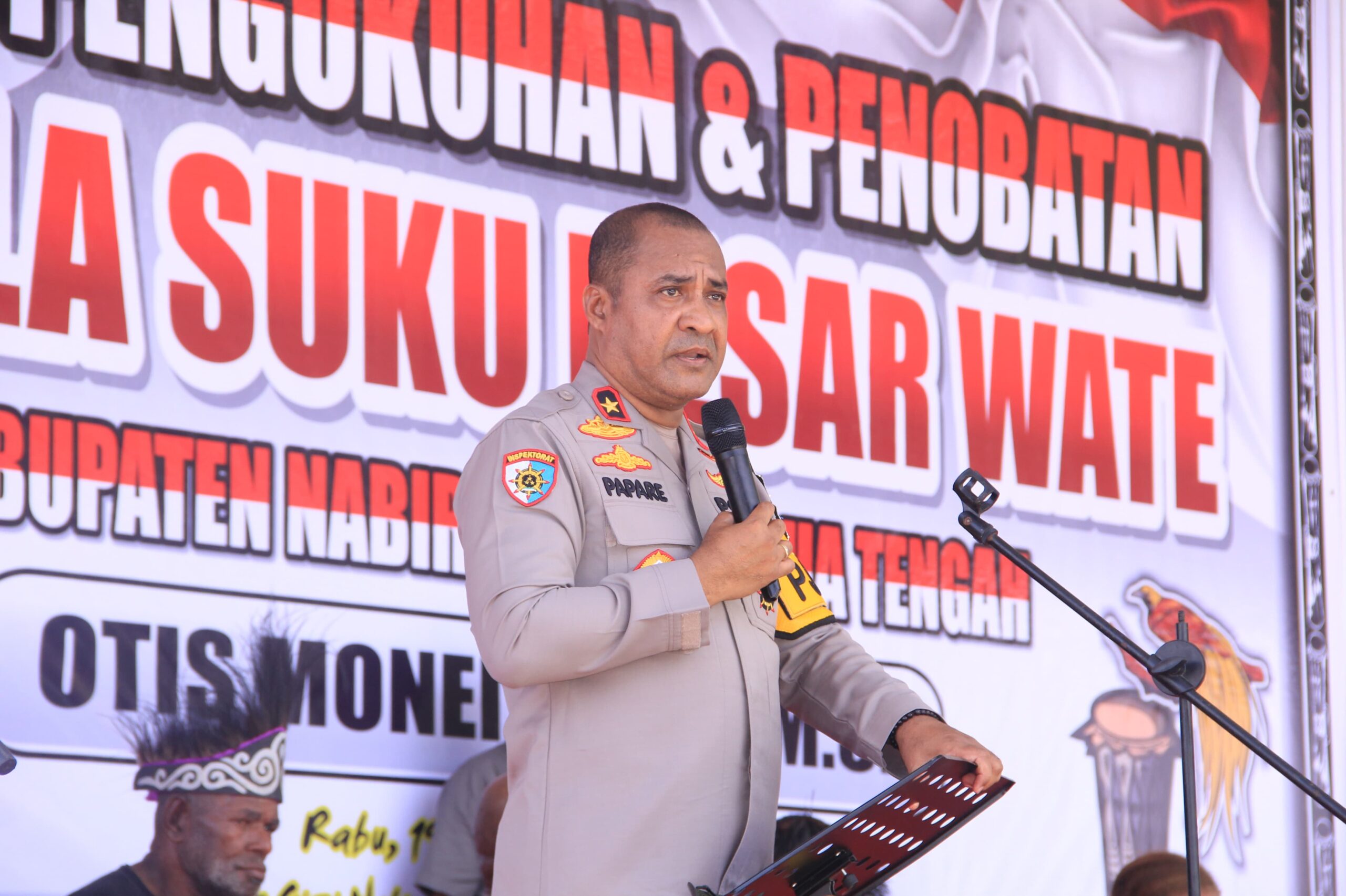 Dalam acara tersebut, Brigjen Pol. Alfred Papare, SIK, Kapolda Papua Tengah, juga memberikan sambutan yang penuh makna. Ia menyampaikan apresiasi terhadap sambutan Otis Monei, yang mengajak seluruh masyarakat adat untuk bergandengan tangan dalam mendukung pemerintah dan menjaga situasi Kamtibmas.