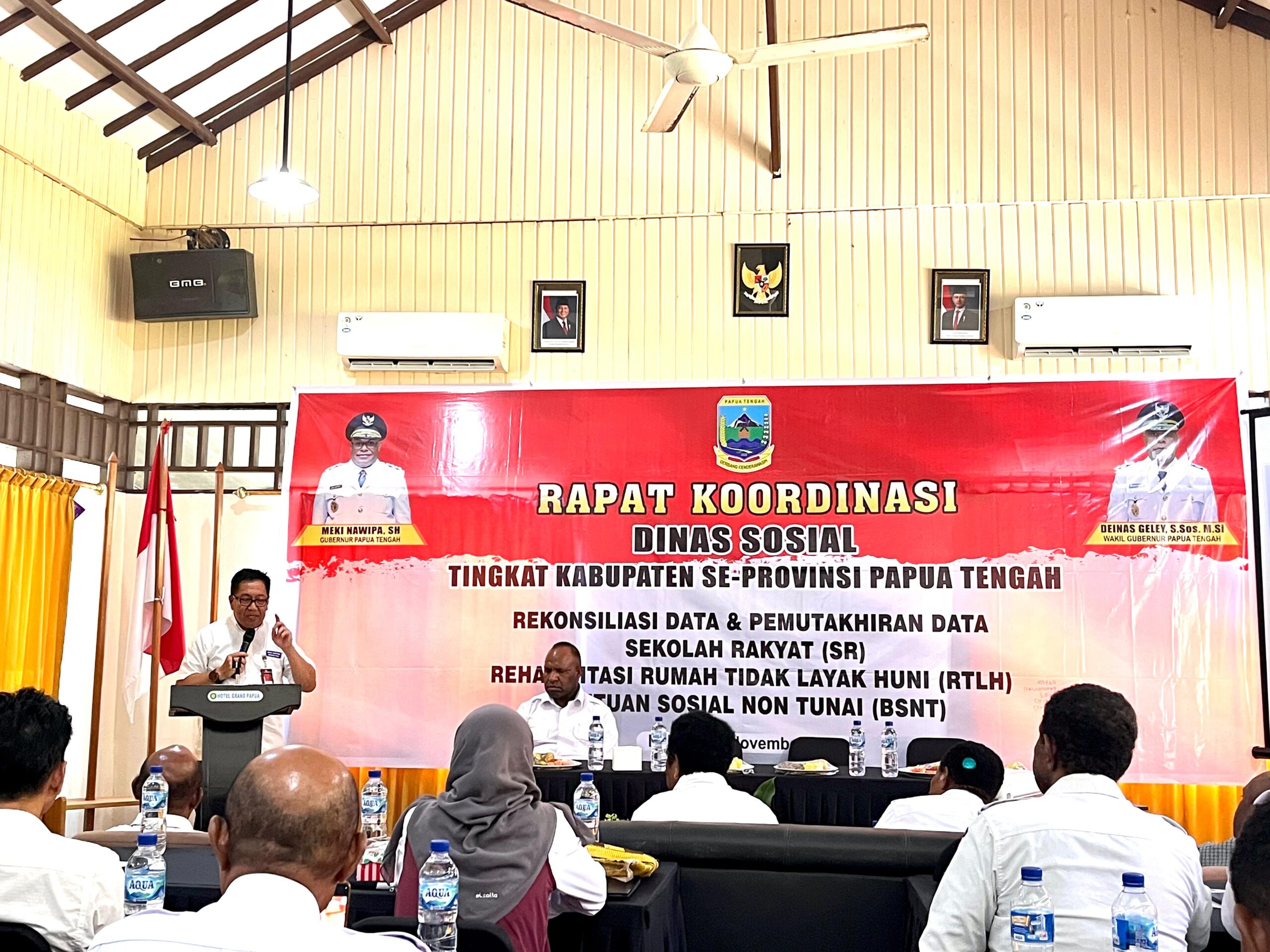 Nabire, admediapapua.com – Dinas Sosial Provinsi Papua Tengah menggelar Rapat Koordinasi Tingkat Kabupaten se-Provinsi Papua Tengah di Hotel Grand Papua, Nabire, dengan dihadiri 47 peserta dari 8 kabupaten. Rapat ini bertujuan untuk menyatukan langkah dalam rekonsiliasi dan pemutakhiran data tiga program sosial utama: Sekolah Rakyat (SR), Rehabilitasi Rumah Tidak Layak Huni (RTLH), dan Bantuan Sosial Non-Tunai (BSNT).