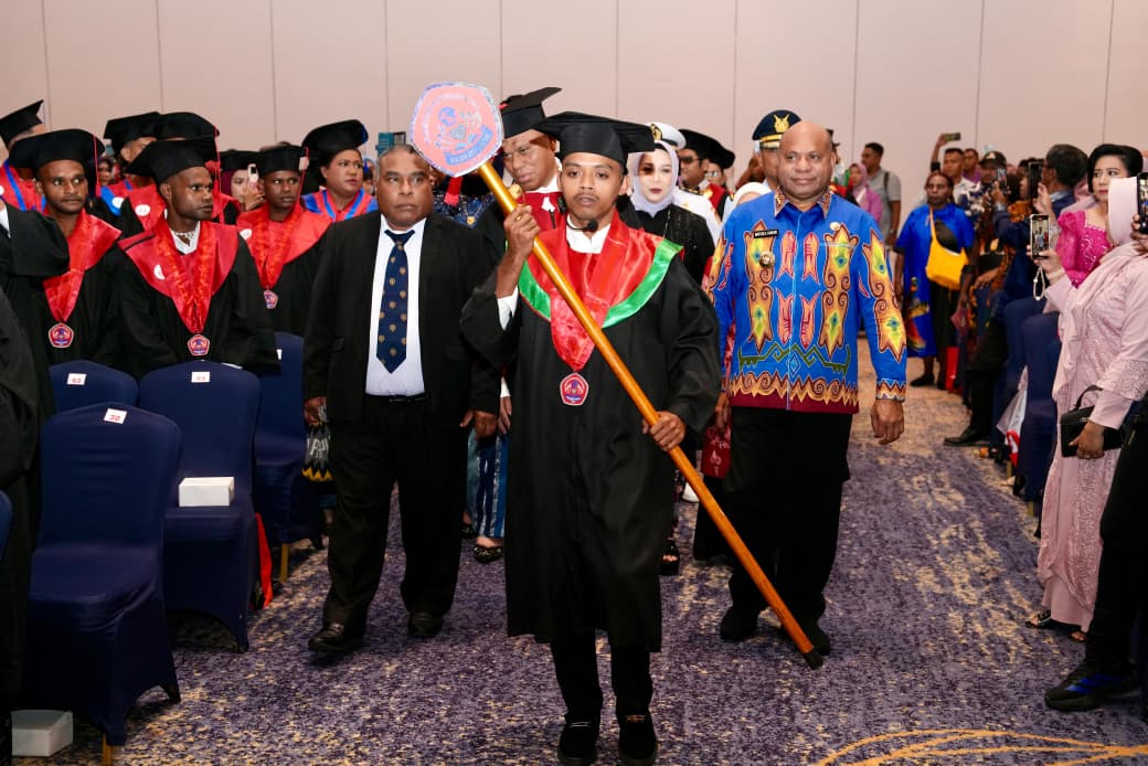 Gubernur Matius Fakhiri hadir didampingi istri tercinta, Ny. Eva Fakhiri, bersama para tamu undangan lainnya. Sepanjang prosesi pembukaan Wisuda XX Universitas Doktor Husni Ingratubun, Matius Fakhiri tampak menikmati seluruh rangkaian acara dan menyapa hangat para wisudawan.