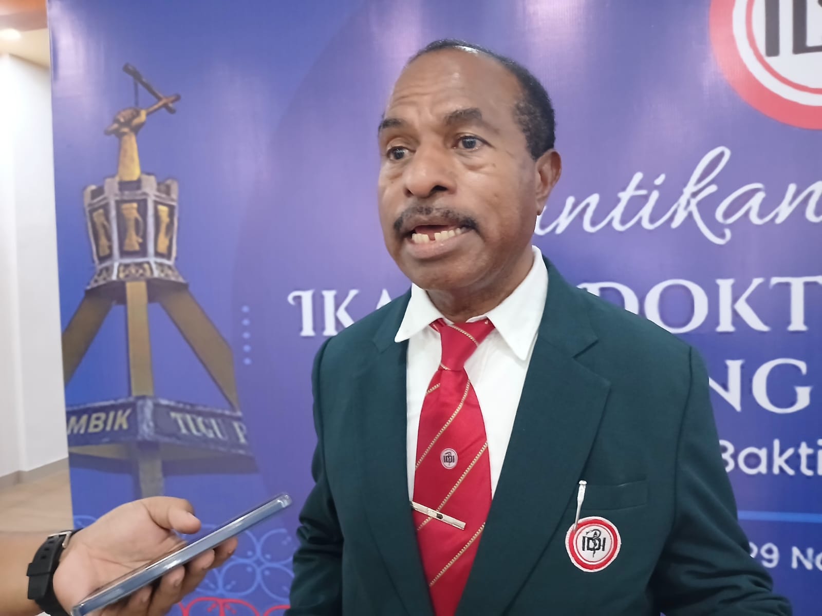Ketua IDI Cabang Sorong yang baru dilantik, Dr. Feliks Duwit, Sp.PD., MSc., MPH., FINASIM, menegaskan dua tanggung jawab utama organisasi profesi dokter: internal dan eksternal.