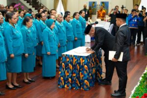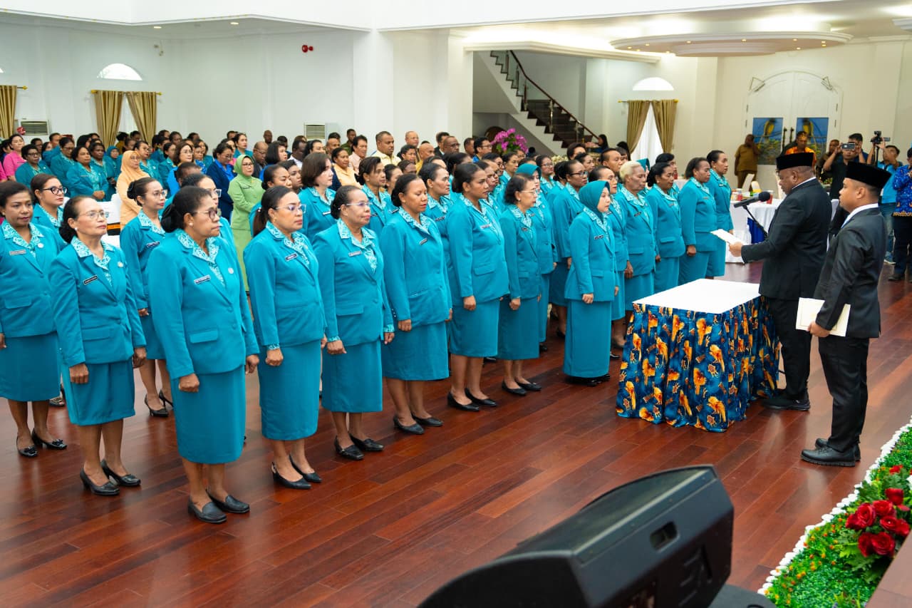 Jayapura, admediapapua.com – “Atas nama pemerintah provinsi papua saya menyampikan selamat bertugas kepada para pengurus yang baru dilantik. Tanggungjawab yang diemban bukanlah tugas ringan, tetapi saya percaya bahwa dengan komitmen, kerja keras dan semangat pelayanan, PKK Papua mampu menghadirkan perubahan nyata bagi kualitas hidup keluarga dan masyarakat,”pesan Gubernur.