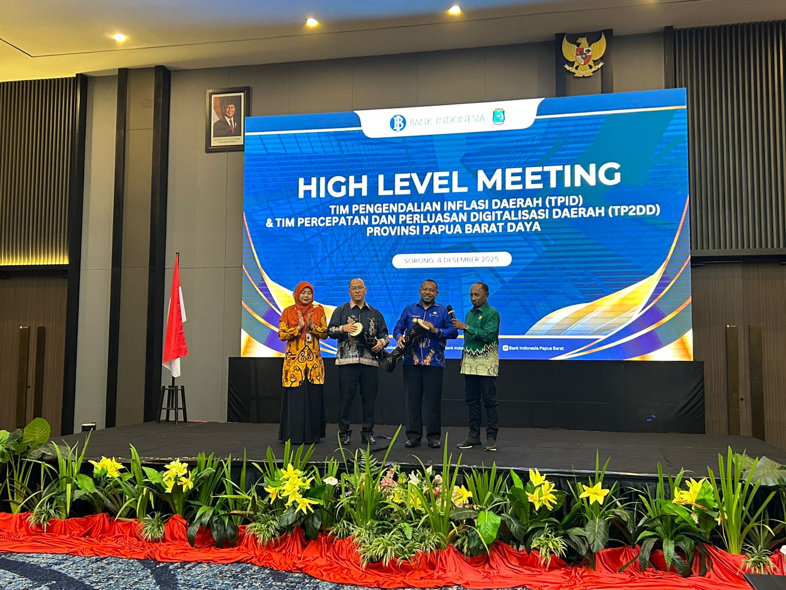 Sorong, admediapapua.com – Pemerintah Provinsi Papua Barat Daya (Pemprov PBD) bersama Bank Indonesia menggelar High Level Meeting Tim Pengendalian Inflasi Daerah (TPID) dan Tim Percepatan dan Perluasan Digitalisasi Daerah (TP2DD), bertempat di salah satu Hotel di Kota Sorong, Kamis (4/12/2025).
