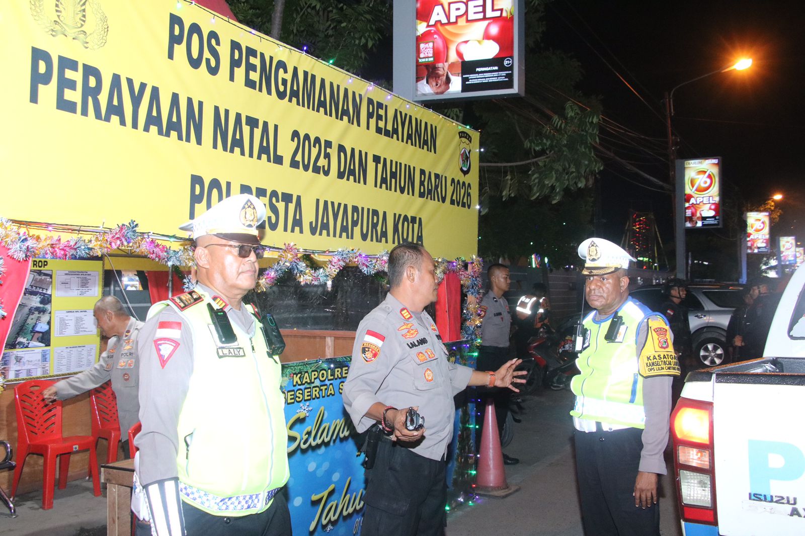 Usai apel kesiapan, personel Operasi Lilin Cartenz-2025 langsung bergerak melaksanakan patroli malam dengan menyusuri rute Pos Pengamanan Jembatan Merah, Pos Pengamanan Entrop, Pos Pengamanan di depan SIP Hotel, sebelum kembali ke Mapolda Papua.