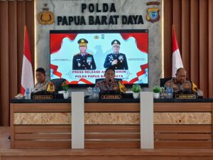 Aimas, admediapapua.com – Kepolisian Daerah (Polda) Papua Barat Daya menggelar Press Release Akhir Tahun 2025 yang dipimpin langsung Kapolda Papua Barat Daya Brigjen Pol. Gatot Haribowo, S.IK., M.AP, didampingi Irwasda, Karo Ops, serta jajaran Pejabat Utama (PJU) yang berlangsung di Polda Papua Barat Daya Kabupaten Sorong, Selasa (30/12/2025).