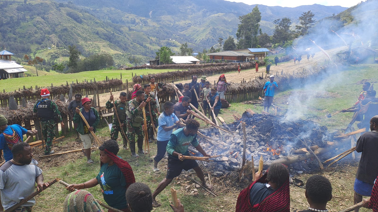 Senada dengan itu, Danpos Balingga Lettu Inf Arif Jumaedi menjelaskan bahwa para prajurit menyiapkan ratusan porsi makanan bergizi bernuansa nasi kuning yang dinikmati bersama masyarakat di halaman Kantor Distrik Balingga. Selain bakar batu dan makan bersama, Satgas juga membagikan terompet kepada anak-anak sebagai simbol keceriaan dan harapan menyambut tahun yang baru.